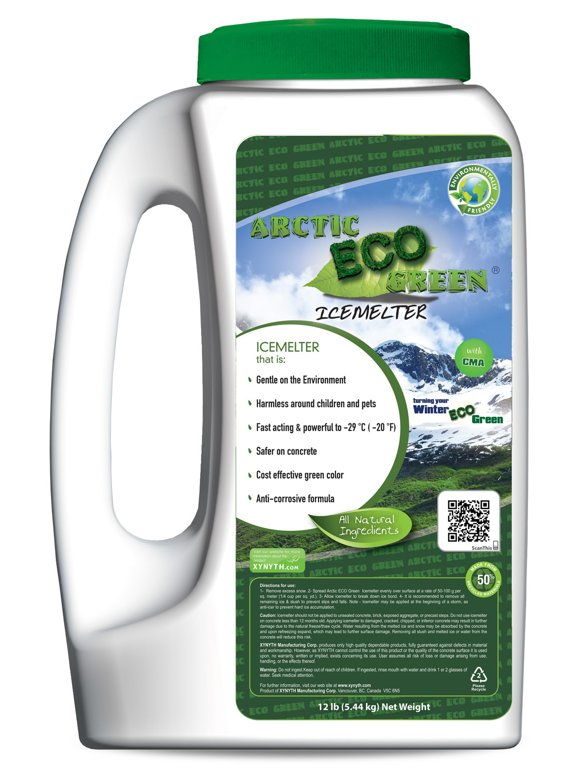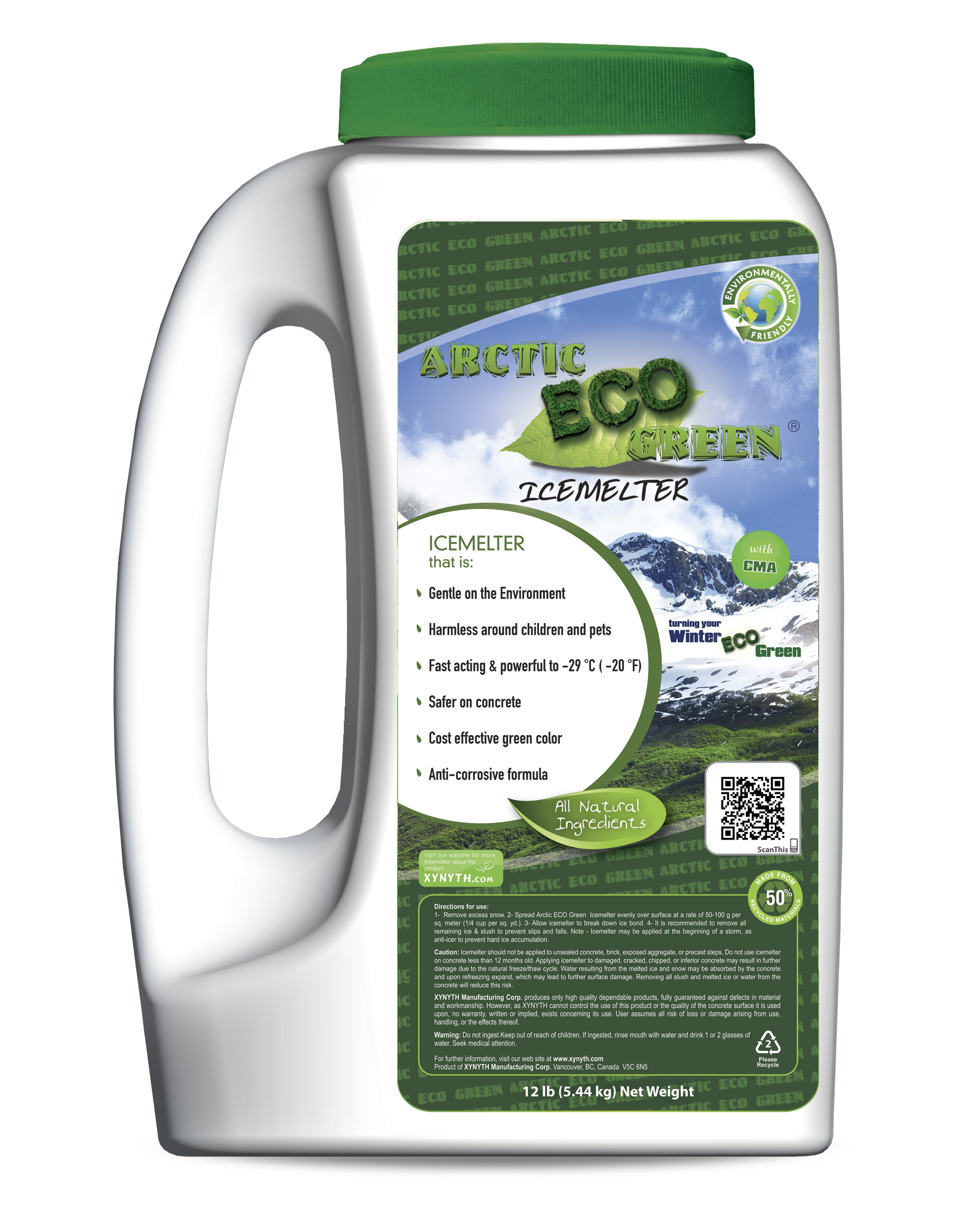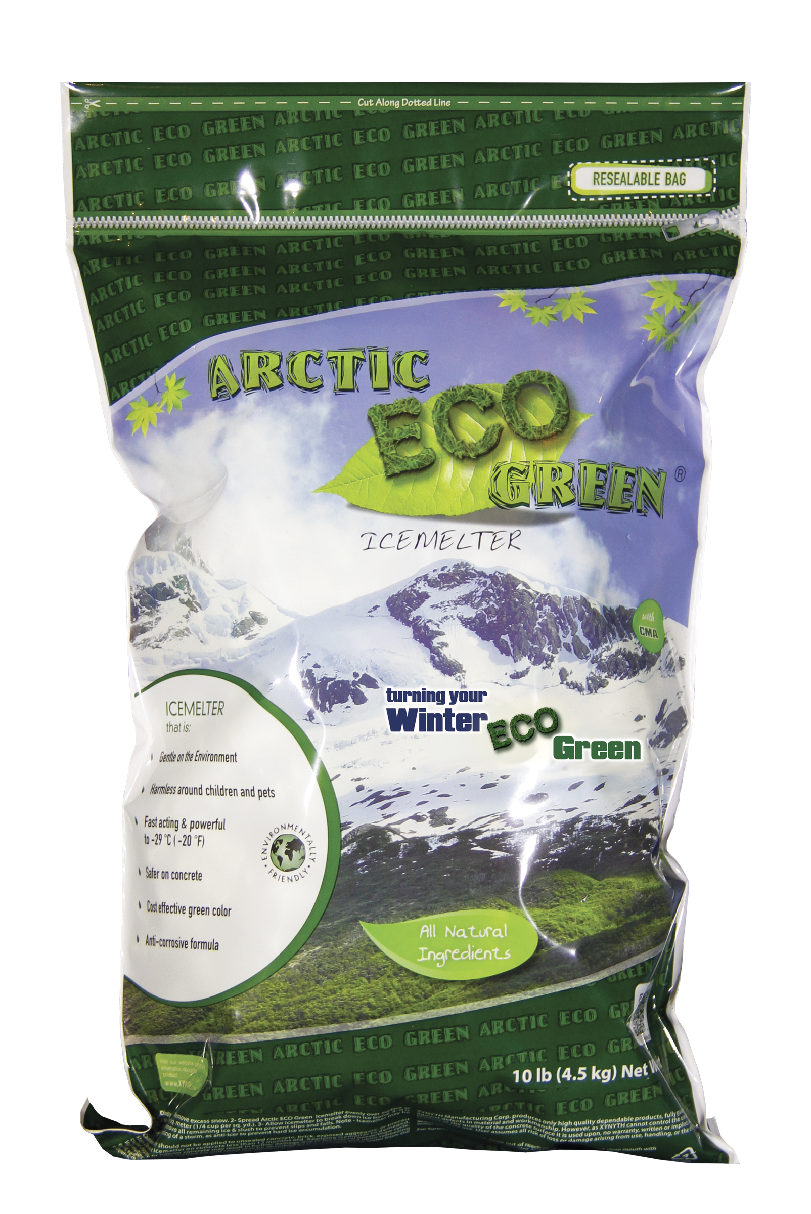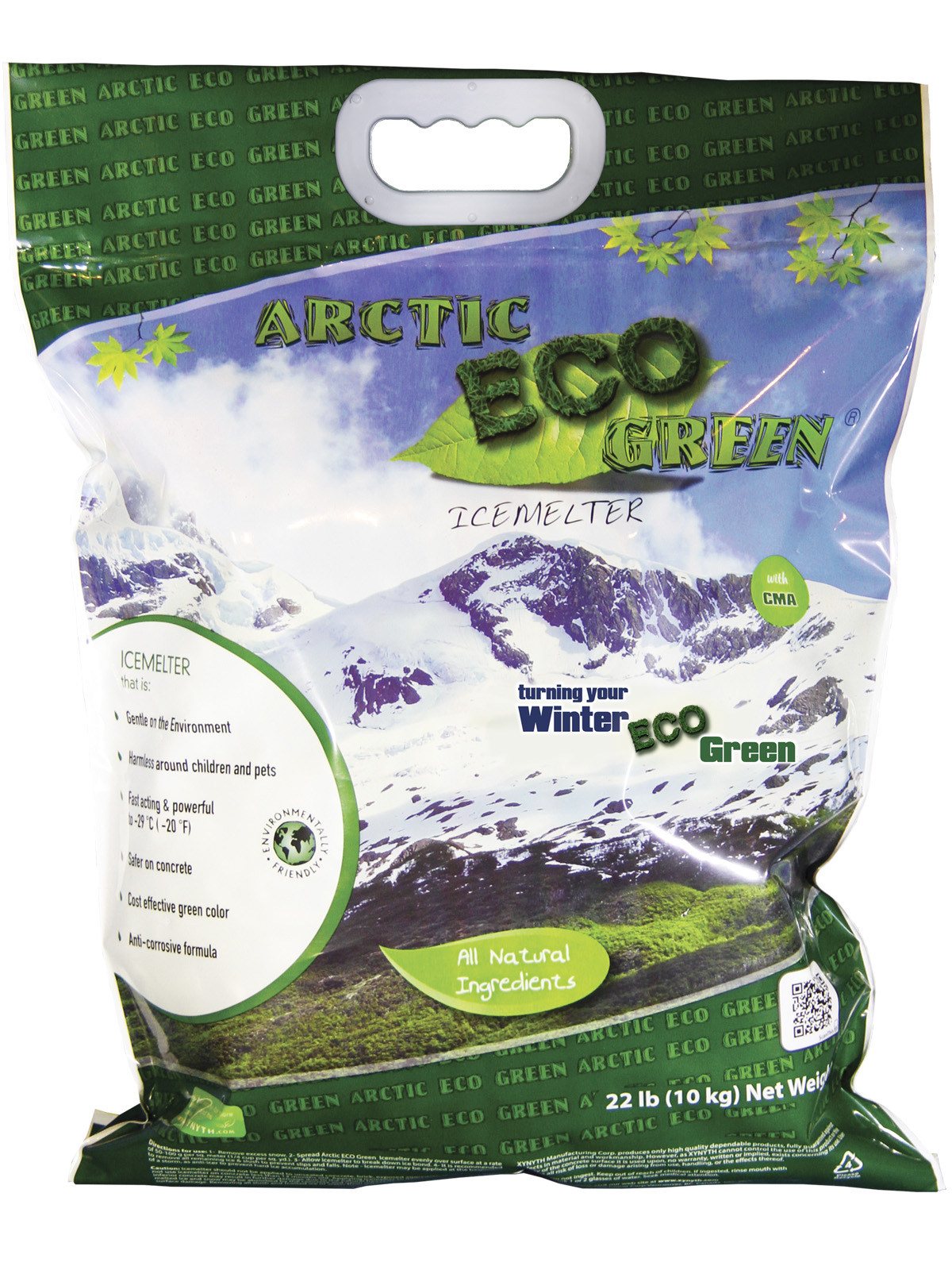 Arctic ECO Green® Icemelter is a powerful all natural deicer that is gentle on the environment, the surfaces it is applied to and harmless around children and pets. This icemelter was designed for the organically inclined.