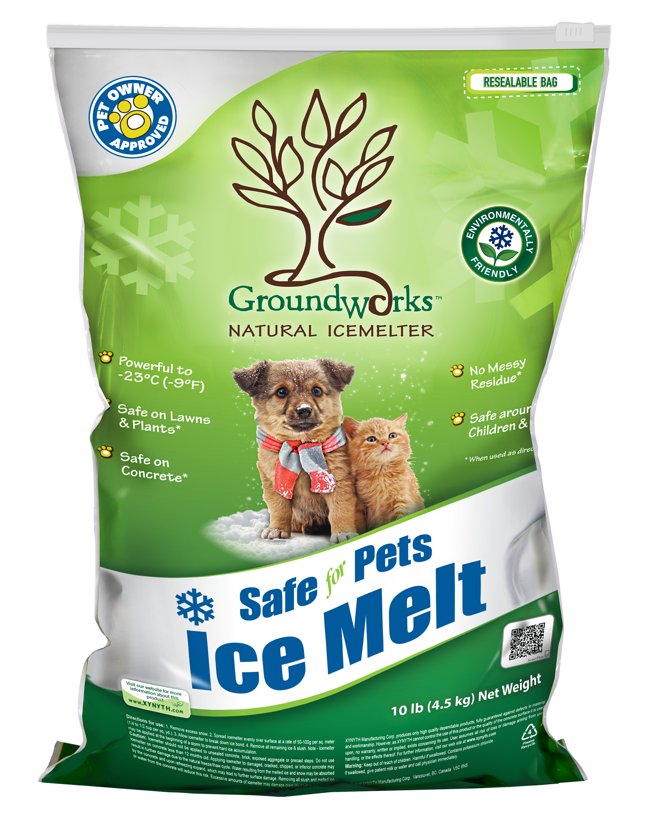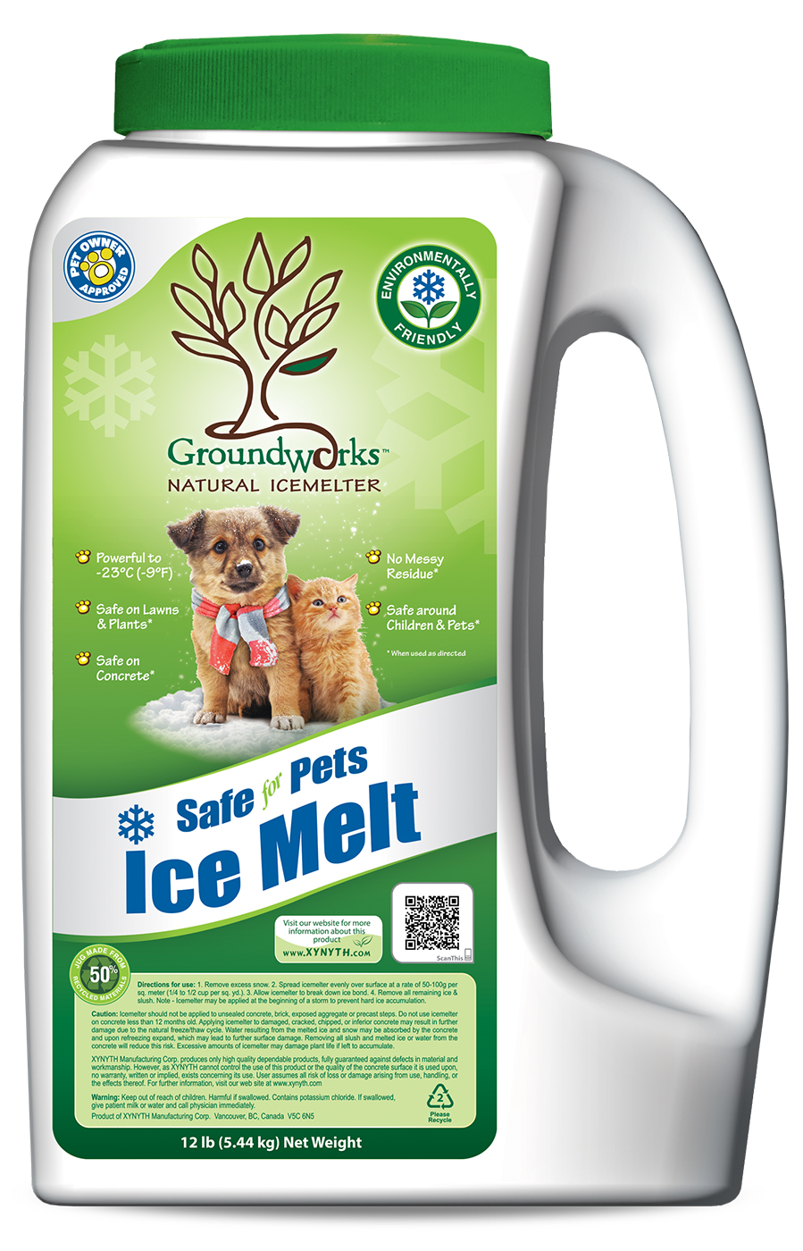 GroundWorks Natural™ Icemelter will not harm humans or animals. It is safe to handle. Gloves are optional. WHMIS exempt in Canada. OSHA exempt in USA.